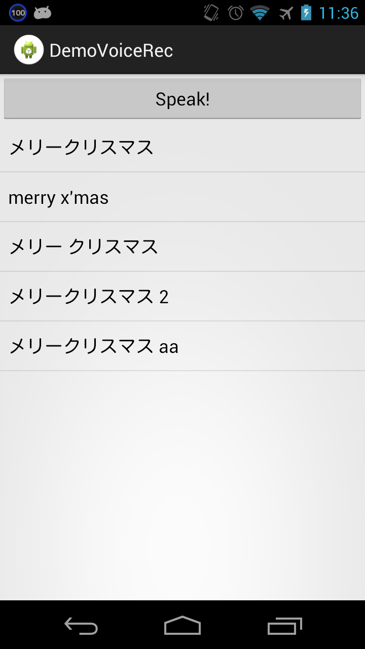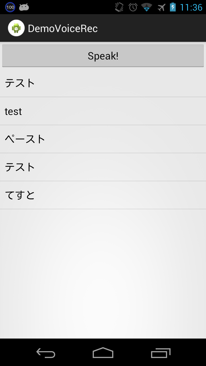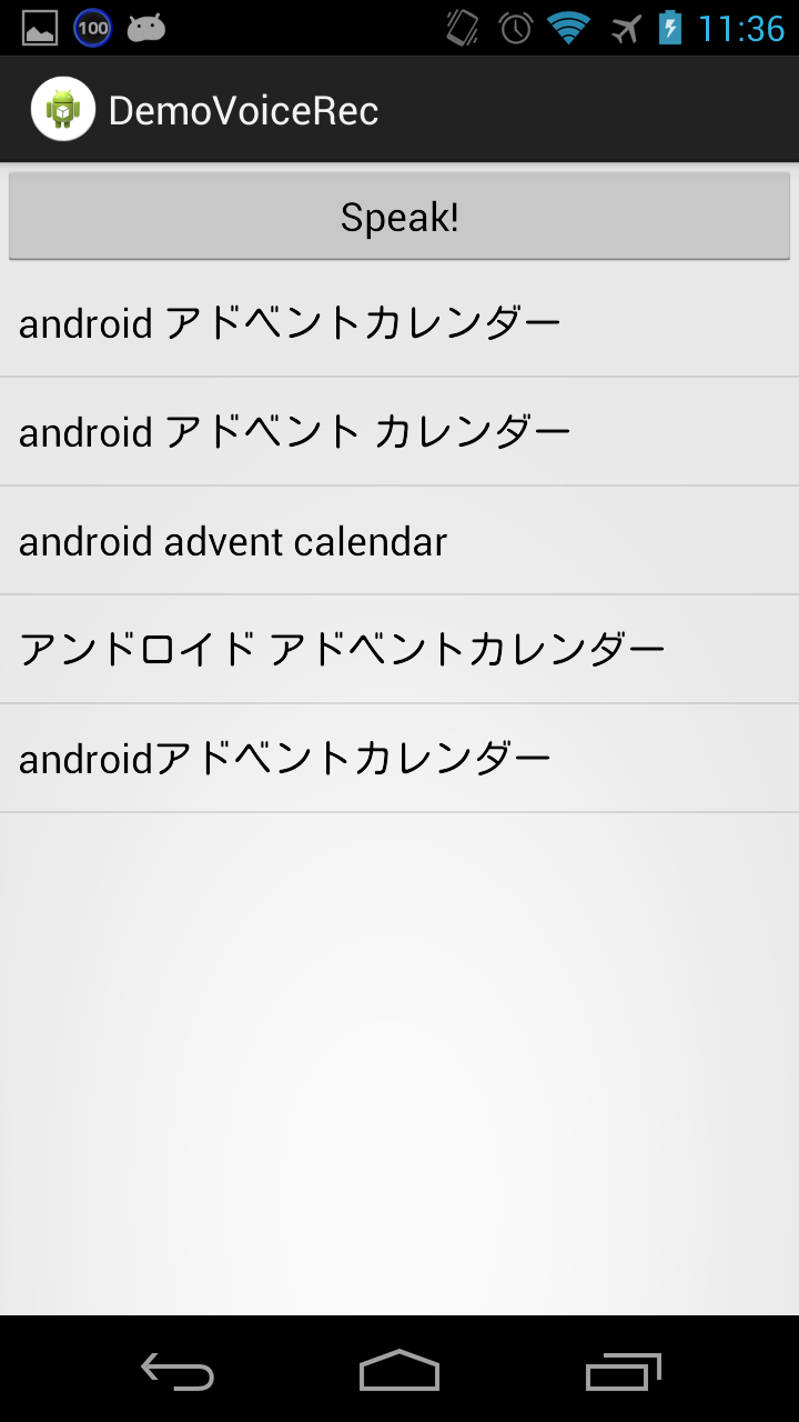 RecognizerIntent、アプリから音声認識する